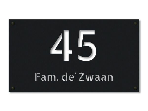 Wil je jouw entree verfraaien met dit moderne naambord? Stel het bord naar wens samen en bestel het eenvoudig online. Zo maak je jouw voordeur compleet met een naambord dat klasse en persoonlijkheid uitstraalt.